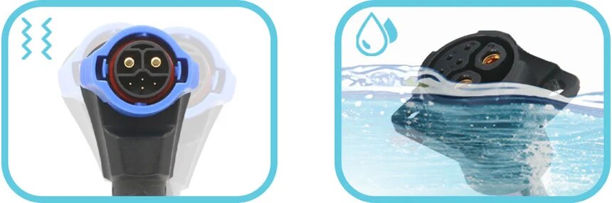 ● 座(zuò)子單邊防水(shuǐ)設計。座子單邊 IP67 防水等級,顯(xiǎn)著(zhe)提升了產(chǎn)品在(zài)戶外環境下的性(xìng)能,延長電池和設備的使用壽命,提高安全性。