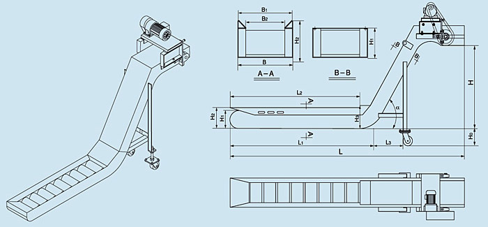 (1)電機功率根(gēn)據有效排屑寬度B2、水平度L1、提升高度H確定