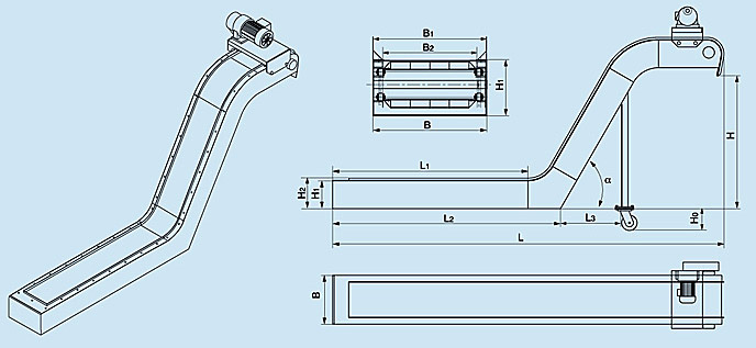 (1)電機功率根據有效排屑寬度B2、水平度L1.提升高度H確定