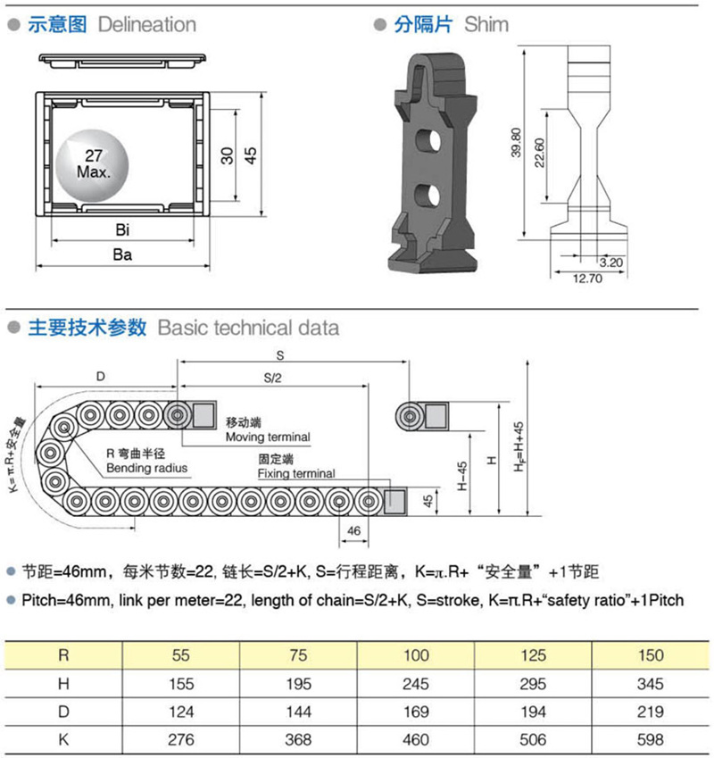 彎曲(qǔ)半徑: 55 75 100 125 150